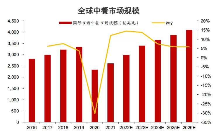 随着中国文化在国际日益受欢迎,中式餐饮也在适当地推陈出新,国际市场对中式餐饮的接受度不断提高。在全球经济复苏、政策逐步放开的背景下,2023年亦被称为中餐出海“元年”,瑞幸咖啡、蜜雪冰城、正新鸡排等大量连锁餐饮品牌陆续走向全球,寻找第二增长曲线。
