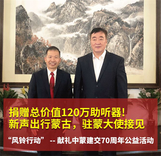 值得一提的是,新声助听器一直积极响应国家一带一路建设,在中蒙建交70周年之际,注意到蒙古国存在大量需要听力帮助的患者,为加深中蒙两国友谊,新声助听器捐赠了价值120万的200台Primo U600充电式助听器,充分改善了当地听损患者的生活质量。