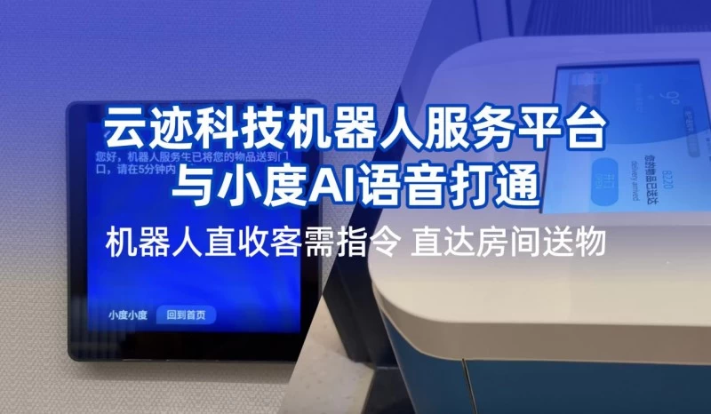 为提升用户在酒店的服务体验,促进酒店智能生态融合发展,云迹科技与小度科技达成合作,将机器人服务与小度AI语音全链路打通,使酒店服务机器人实现了多设备需求端口工单服务的多闭环。