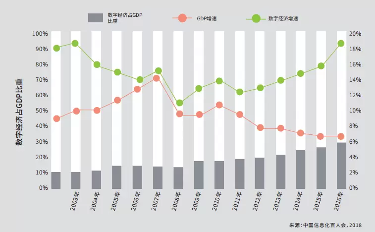 全球知名信息技术咨询公司IDC在网易云创大会上发布了《2018中国企业数字化发展报告》。报告显示,近几年数字经济占GDP比重逐年增加,至2017年已经达到32.9%,规模达27.2万亿元。但相对于发达国家(美、德、英)数字经济占GDP比重超过50%,仍有很大提升空间。目前我国数字经济增速将近20%,已超过上述发达国家。