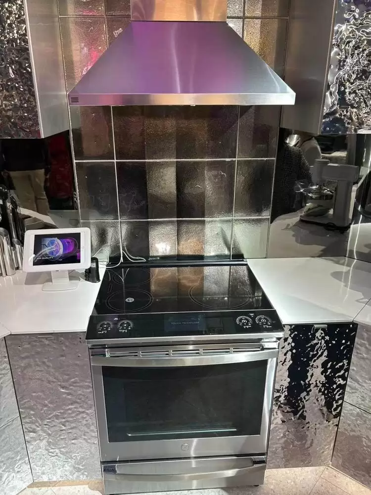 此外,入围KBIS最佳奖的GE Profile Revolution烟机,搭载空气质量传感器,能实时监测室内空气质量并作出反应,并通过SmartHQ深度学习用户使用习惯,提供最优空气管理方案。现场展出的Genesis微波烤箱创新采用微波、光波、加热管三种热源,相对传统加热管加热烤箱,烹饪速度更快;同时搭载7寸彩屏,内置摄像头实时记录烹饪过程,用户可通过手机实时观看烹饪情况,并远程控制。