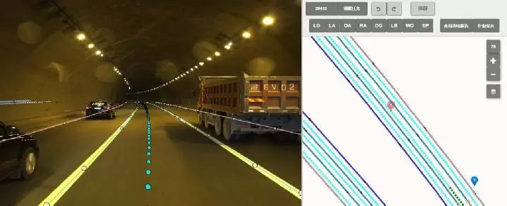 那么,终南山隧道的数据是如何采集的呢?由于终南山隧道内没有GPS信号,对高精度的采集是一个很大的挑战,而宽凳科技在地图采集过程中充分运用是AI技术,以车载摄像头拍摄到的画面为基础,跟随车辆快速连拍多张照片,形成大量数据,再通过人工智能系统完成车线识别、特征点提取、构建车道的网络拓扑以及制作各种地物,包括人行横道、标线、交通标志等。