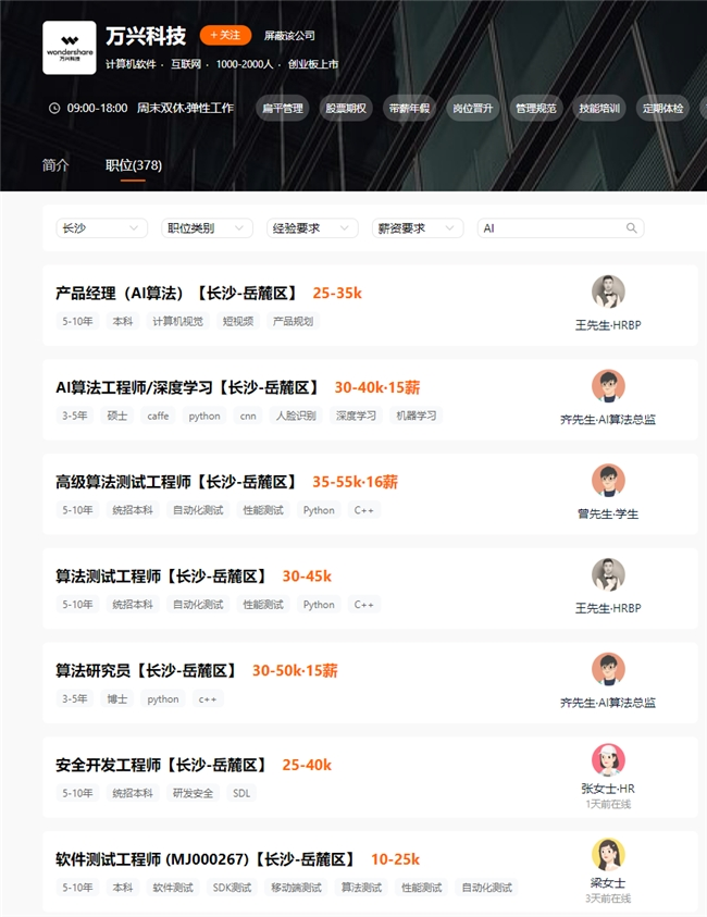 - AI产研岗位薪酬领跑市场 万兴科技百万年薪招聘高端产品人才