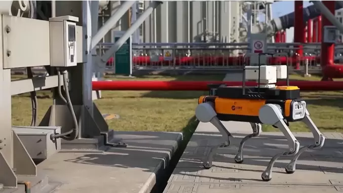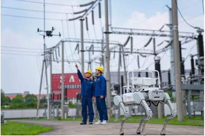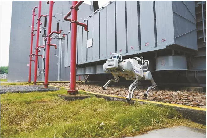 在安徽某±1100kV特高压直流输电线路受端站,运维人员采用四足机器人等智能设备开展巡检,保障电力设备安全运行,借助智能AI算法,可实现对设备状态等数据进行自主采集、识别、运算和诊断分析