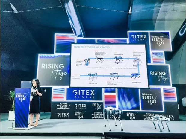 2023年在全球科技盛会GITEXGLOBAL上作为唯一一家中国四足机器人企业发布四足应用主题演讲