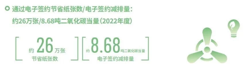 据《2023年签约减碳与低碳办公白皮书》所示,远东控股2022年通过使用电子签约节省约26万张纸,累计减少约8.68吨二氧化碳当量的碳排放。