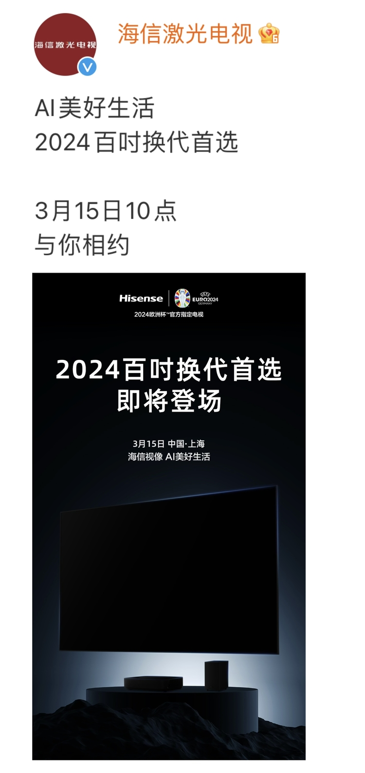 A1+激光电视将如何碰撞火花?2024百吋换代首选与你相约3月15日