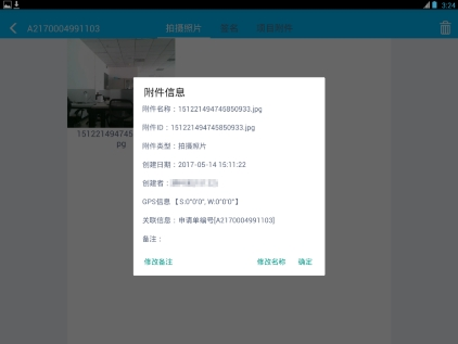 SW-LIMS支持对计量现场业务的附件管理,如:SW-LIMS可以对现场检定校准过程中产生的各类项目附件、签名附件、现场照片、测点示意图附件进行统一管理,同时SW-LIMS可实现修改名称、添加备注管理。