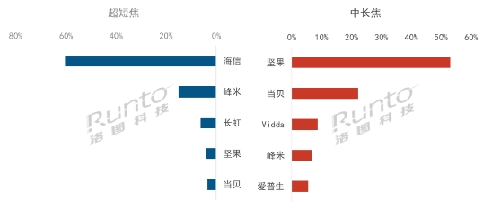与此同时,根据洛图科技(RUNTO)数据显示,2023年,中国家用激光投影市场CR4指数(前四名合计占比)达到82.2%,较2022年增加3.2个百分点,市场继续向头部品牌聚拢。中长焦市场中,Vidda在2023年补齐C1系列,凭借行业机皇C1 Pro、专业4K三色激光C1S等系列持续推进4K+三色激光技术,出货量翻2.5倍。