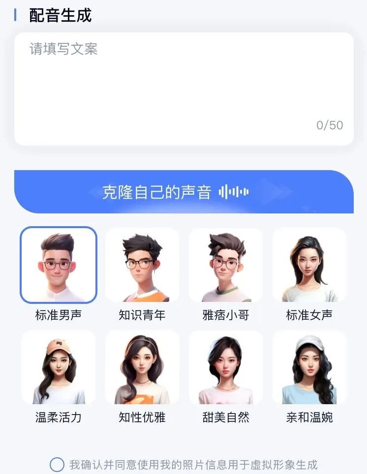 在数字人的声音上,用户通过输入文字介绍,即可实时生成语音,墨宇宙在提供丰富的声音库基础上,还接入声音训练模型,用户可克隆训练自己的声音,在名片主界面介绍时使用。