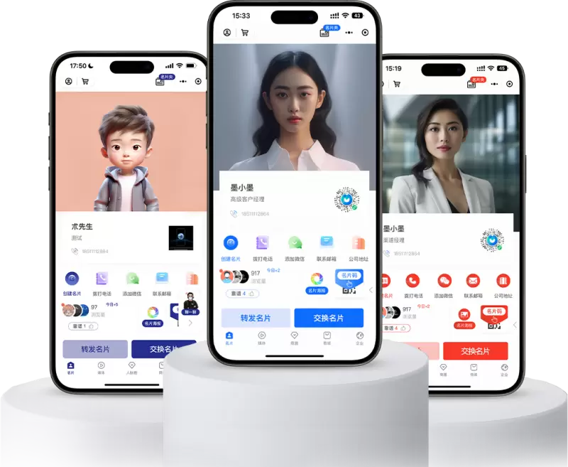 名片,是商务社交中的重要一环。有别于传统电子名片,墨宇宙AI数字人名片接入主流AI绘图及图生视频模型,用户仅需上传一张照片,即可生成多风格化的数字人形象,满足用户个性化选择需求,数字人通过AI驱动在名片主页面进行动态展示。