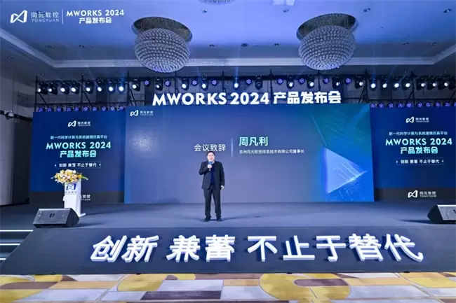 MWORKS2024产品发布会由同元软控总经理刘奇主持。发布会伊始,由同元软控董事长周凡利发表开幕致辞。周凡利在致辞中回顾了同元软控打造新一代科学计算与系统建模仿真平台MWORKS的初衷和愿景,希望面向装备数智化构造自主、开放、先进的信息物理系统计算仿真平台底座;通过标准、开放、兼容、迭代,形成科学计算与系统建模仿真数字生态;融入工业创新,联合各方力量,共创先进软件。