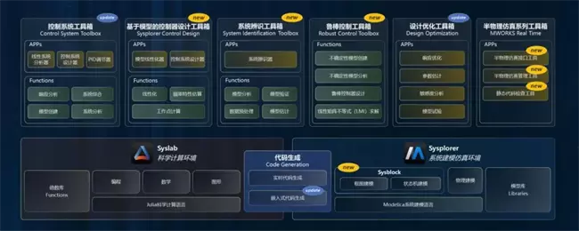 MWORKS 2024a控制系统工具箱全新发布7个工具箱,大幅更新3个工具箱,基于全新推出的Sysblock框图工具,全面提供与对标产品媲美的框图和状态图建模、代码生成、模型代码双向追溯等能力,实现框图、状态机和物理模型的无缝统一,提供了相对完整的控制系统解决方案,通过多范式统一建模实现控制与被控对象的统一建模、仿真及代码生成,采用统一建模环境和工具链支撑控制系统全流程研发。