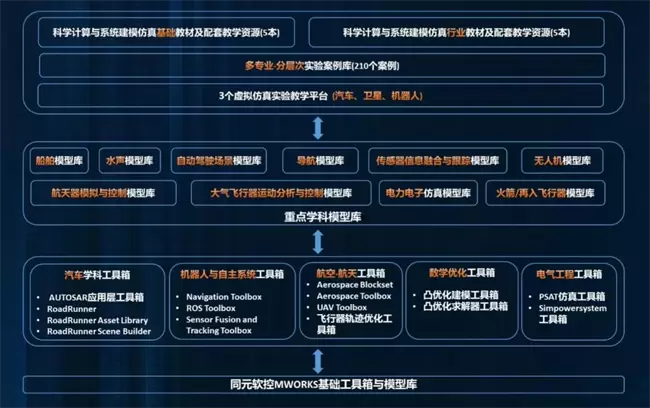 王忠杰介绍,由哈尔滨工业大学牵头,联合北京航空航天大学、北京理工大学和哈尔滨工程大学,基于MWORKS 开放平台与开放架构,面向国内高校科研、教学领域需求打造的SE-MWORKS,由15个工具箱、10个模型库、10本系列教材及教学配套资源、3个虚拟仿真实验教学平台、210个科教领域案例和2个基础平台构成,已在4所高校实现了人才培养中的广泛应用,支撑了数个重要科研项目。