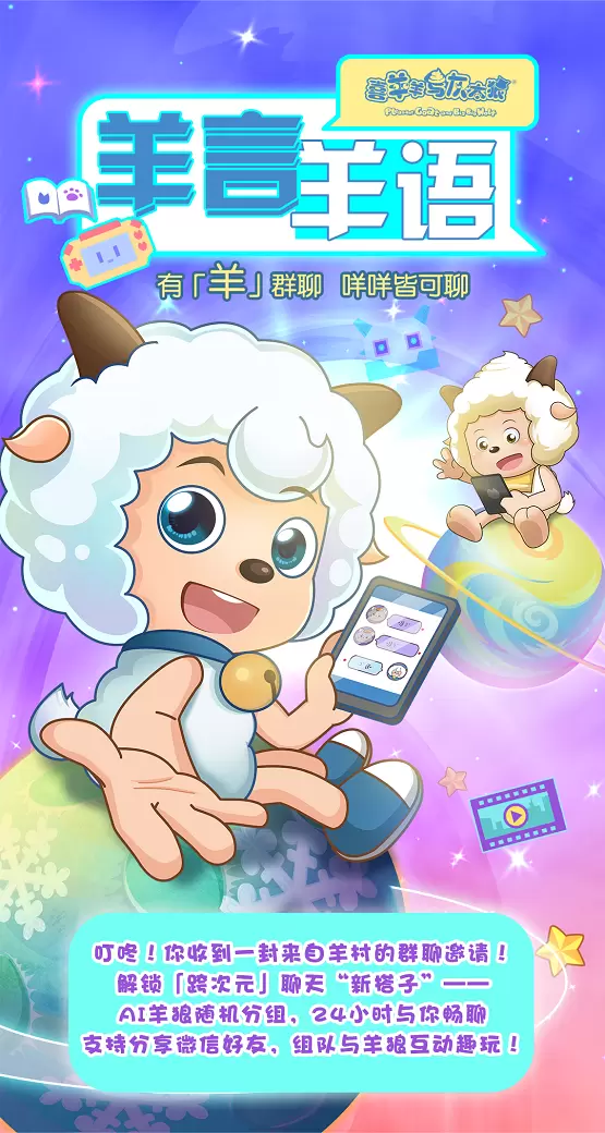 现在赶快加入“羊言羊语”AI群聊小程序,开启专属对话互动,重温童年的欢乐时光,让记忆中的童年伙伴再次陪伴左右!羊狼们期待在青青草原与大家相遇,一起创造更多美好的回忆!