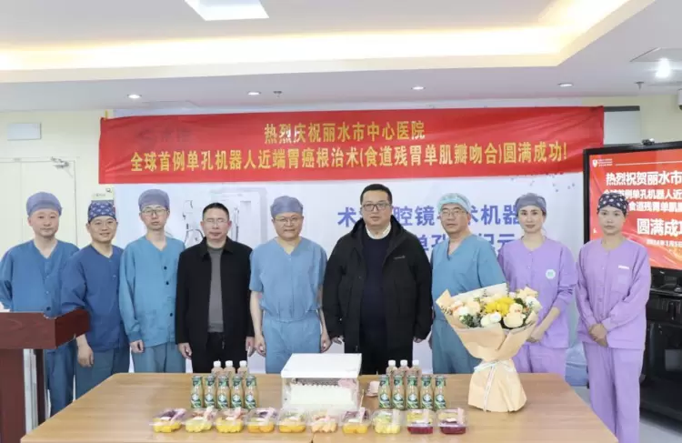丽水市中心医院完成全球首例单孔机器人近端胃癌根治术(食道残胃单肌瓣吻合)