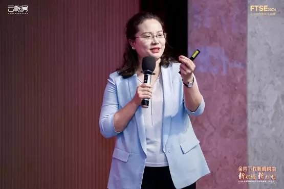 接下来,云猫易账创始人吉小梅女士以《财税顾问——代账公司增长新引擎》为题发表了精彩演讲。吉总以严谨的逻辑和理性的分析,深入探讨了在当前竞争激烈的存量市场中,代账机构老板们应高度重视财税顾问岗位,深耕增值产品,提供价值服务,构建组织和人才能力,全身心聚焦增长。同时,云猫易账智能会计共享中心可以通过标准化给账务兜底,给顾问信心,进而有效促进代账机构创收增长。