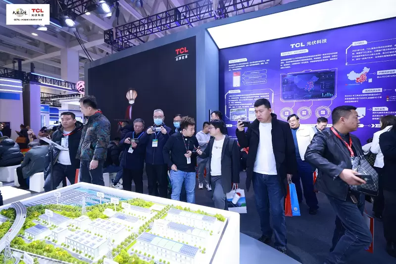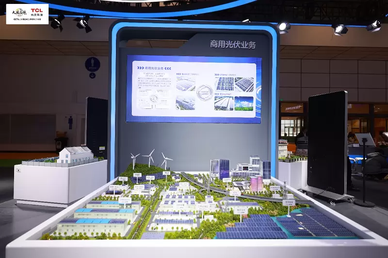 在工商业分布式展区,TCL光伏科技以拟真沙盘的形式,全面展示了风光储全覆盖业务场景及产品形式,涵盖分布式屋顶光伏、光伏车棚、渔(农)光互补、漂浮电站、BIPV、分布式风电、光储一体化等多种场景及形式,吸引了众多参展观众及光伏同仁驻足观赏,展现了TCL光伏科技在工商业分布式解决方案领域的强劲实力。