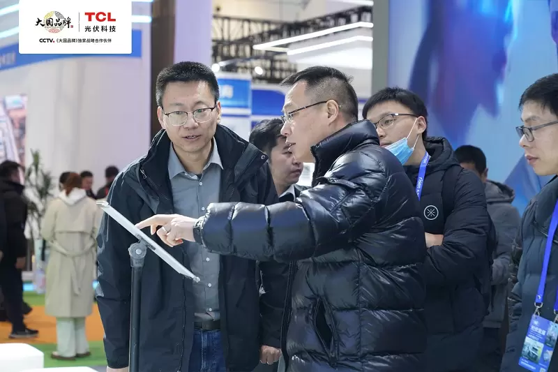 展会次日,浙江浙银金融租赁股份有限公司董事长汪国平及嘉宾一行莅临TCL光伏科技展位,TCL光伏科技电站运维部负责人于延祥及业务人员进行了热情接待,带领来访嘉宾参观了各展台区域,并详细介绍了三大核心业务情况,以及TCL光伏科技未来在绿色智慧能源领域的相关布局。