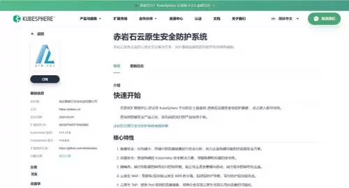 KubeSphere 在容器管理方面的专长,使企业能更高效地处理复杂的容器环境。这种专业性不仅表现在其提供的灵活性和可扩展性上,也体现在如何提升运维效率和系统透明度方面。而雅客云在云原生安全领域的深厚积累,提供了全面的安全解决方案,包括自动化安全检查、持续监控等功能,这对保护企业关键资产和数据至关重要。KubeSphere 与雅客云携手,能够将 KubeSphere 容器平台的安全性提升至新的水平,确保客户的业务在一个更加安全和可靠的环境下运行。现在,用户可以通过 KubeSphere Marketplace 订阅部署赤岩石云原生安全防护系统企业版,快速为 KubeSphere 平台增加云原生安全能力。部署完成之后,平台管理员可在 KubeSphere 导航栏直接进入赤岩石平台,对云原生化基础设施和应用程序进行安全检查和防护。通过 KubeSphere Marketplace 进行订阅部署: