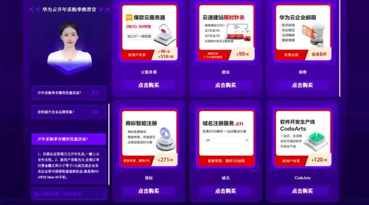 360智脑驱动的AI数字人化身华为云开年采购季AI主理人。不仅拥有最佳外表,还拥有最强大脑,身兼产品推荐官、AI客服、AI主播等多种角色——针对人气热卖产品不间断介绍,品牌、产品、玩法介绍不在话下,提问咨询句句有回应,高效实现品牌与采购方的有效沟通,以充满科技感氛围,更具沉浸感与人性化的交互磁场,带来耳目一新的采购体验。