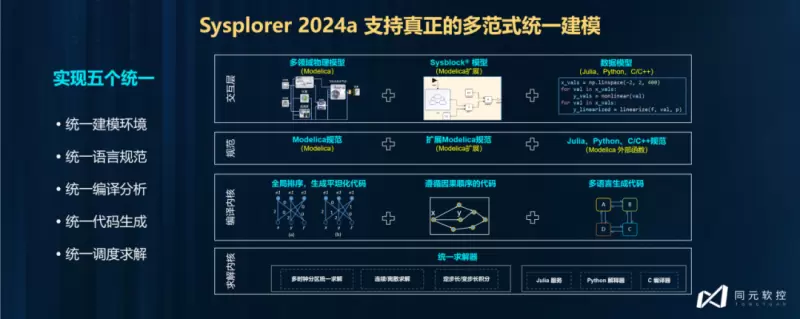本次MWORKS 2024a创新性地在Sysplorer统一环境中实现Sysblock建模,其框图建模和状态机建模实现功能、性能、易用性全面对标;模型和代码之间具备双向追溯能力;混合建模仿真可以无缝集成物理、框图、状态机模型。支持真正的多范式统一建模,可实现统一建模环境、统一语言规范、统一编译分析、统一代码生成、统一调度求解。