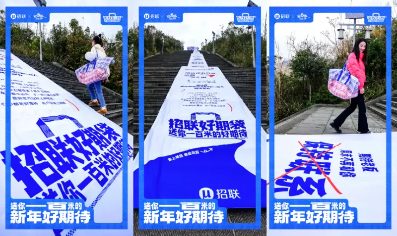 春节期间,招联在诗城重庆奉节热门登高景区凤凰山打造了一个巨型好期袋,为大家送去长达百米的新年好期待。在登顶的沿途阶梯,游客一路可收获各种花式祝福,每个人都能从中找到属于自己的好期待。现场招联还为大家送出了500只好期袋,这个“许愿新地标”也喜提重庆日报等媒体的报道。