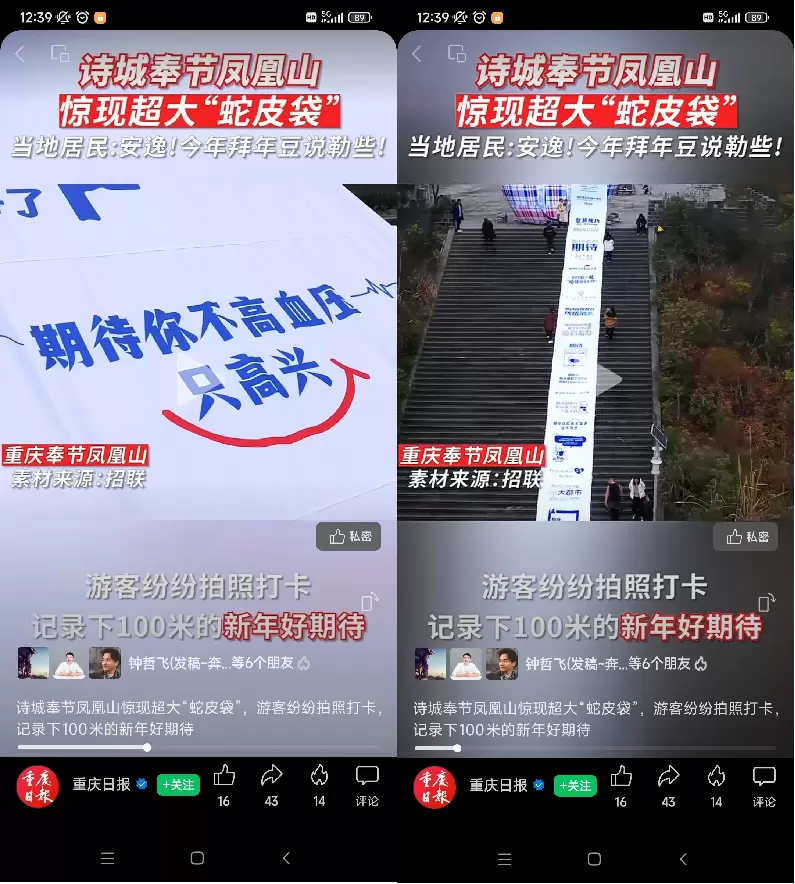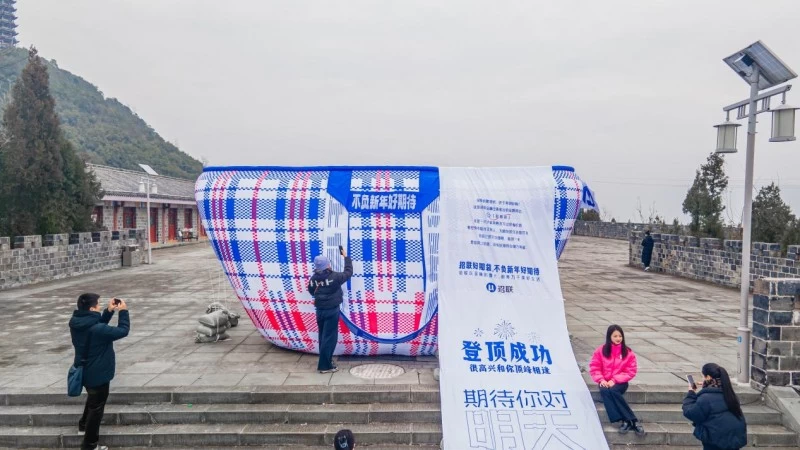 春节期间,招联还在诗城重庆奉节热门登高景区凤凰山打造了一个巨型好期袋,为大家送去长达百米的新年好期待。在登顶的沿途阶梯,游客一路可收获各种花式祝福,每个人都能从中找到属于自己的好期待。现场招联还为大家送出了几百只好期袋,这个“许愿新地标”也喜提重庆日报等媒体的报道。