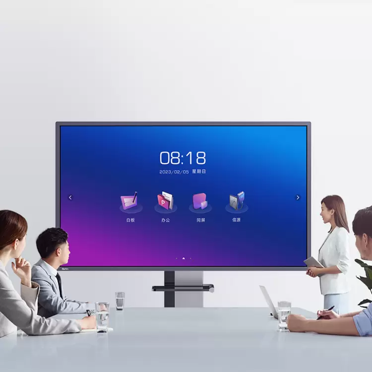 再次,皓丽会议平板M3系列真正把一块屏幕的用处发挥到了极致。四等极窄边框的设计,可以自由横竖屏切换,满足不同场景互动展示的需求,无论横屏当会议展示、迎宾接待,竖屏当互动广告机、直播大屏,真正实现了一机多用。