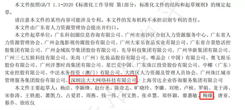 粤人协表示,“正是有了他们(指参编企业)的专业技术力量,粤人协才能持续不断研制出适应市场和创新需要、原创性、高质量的标准,推动人力资源生态高质量发展。”法大大也将持续打磨更好的产品和服务,以行动赋能人力资源服务工作。