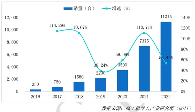 近几年,无人叉车的确迎来了爆发式增长机会。根据GGII数据,2016年至2022年中国市场无人叉车销量年均复合增速近72%,市场规模从2016年的2.39亿元增至2022年的22.63亿元,7年间膨胀了近十倍,即便如此,无人叉车渗透率在2022年才第一次突破1%达到1.65%。