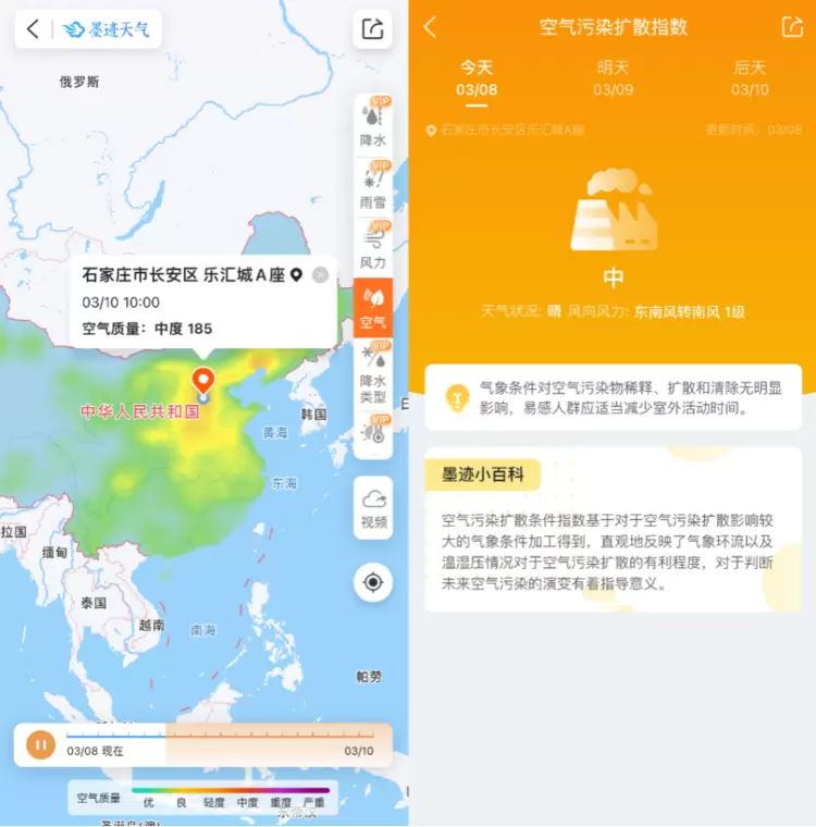 用墨迹天气查污染 科学低碳出行正当时
