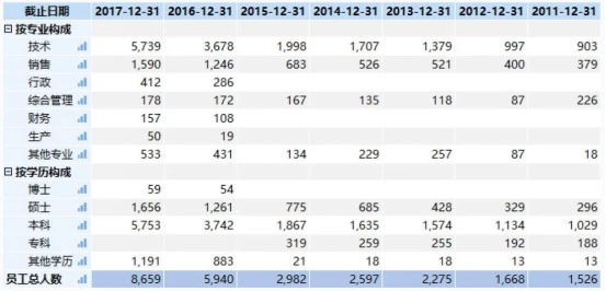 销售费用增长77.10%的原因,主要是职工薪酬和广告宣传费的增加。公司半年报也披露,上半年人员增加近3500人,现在还不能确定人员增加学历构成、人员结构等。下图显示,截止去年底,公司员工合计8659人,主要是技术人员,占比三分之二,不知道这半年新增的3500人多少是技术人员。但是公司披露,公司持续加大人工智能相关领域的研发投入、生态体系构建的投入以及在教育、政法、医疗、智慧城市等重点赛道的市场布局投入。