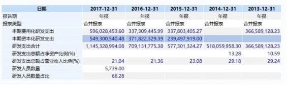 公司每年资本化金额也在暴增。2015年至2017年科大讯飞资本化金额为2.39亿元、3.72亿元和5.49亿元。