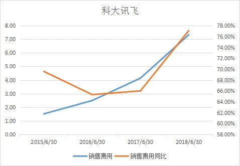 从某种意义上来说,吃掉中报利润的还是新增的3500名员工,因为没有其他太重的投入。 科大讯飞近年来销售费用一直处于高速增长的态势,从2015年中报的4.5亿元增长到现在7.33亿元,同比增长速度也处于较高的水平。