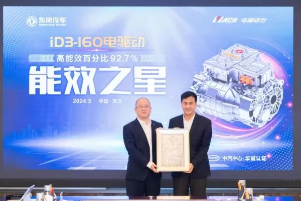 活动中,中汽研华诚认证(天津)有限公司为东风汽车颁发了“DFMR90超级增程器能效之星”认证证书、“iD3-160电驱动能效之星”认证证书。