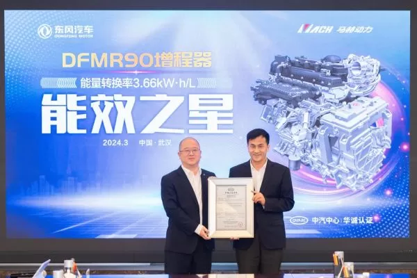 DFMR90超级增程器荣获中汽研“能效之星”认证证书