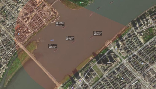 本次试点成功实现对富春江和千岛湖江面、湖面目标区域船只的实时定位和轨迹感知。在电子围栏区域内,能够自动识别任何进入围栏的船只、发出告警,保障航道安全,防止与桥梁碰撞。在能见度低时,可以探测到是否有船只违规航行,通过内生算力将感知数据实时开放至第三方平台,提醒海事局等管理部门确定情况、介入处理。