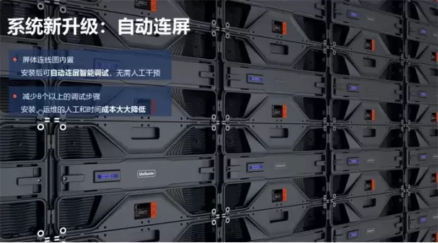 洲明星河系列ULWIII产品还采用了接收卡、HUB卡二合一设计,内部电源采用注塑一体IEC连接,外部电源直接输入至箱体电源,内部没有线缆走线,信号传输更稳定。紧凑的电路设计,节约的空间降低了产品体积的同时,也被用来设计产品可调节结构:即,实现XYZ轴六向调节,且前后都支持XYZ轴调节,工程平整度不仅趋近完美、调整速度也更快。其采用屏体连线图内置设计,安装后可自动连屏智能调试,无需人工干预:自动连屏减少8个以上的调试步骤,安装、运维的人工和时间成本大大降低。