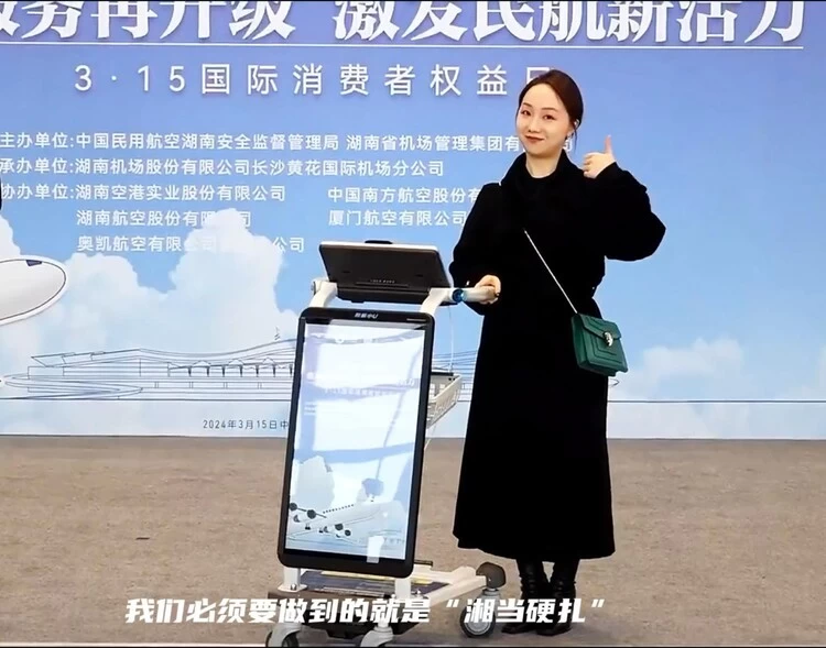 由江西永新精品智能制造的航旅小U从2024年1月13日起正式在长沙黄花国际机场运营,首批进驻设备100台,旅客过完安检后可以免费使用,至今已覆盖服务长沙机场出行旅客超113w人次。