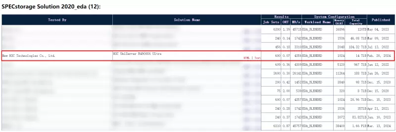 近日,国际标准性能评估组织(Standard Performance Evaluation Corporation, SPEC)的SPECstorage Solution 2020基准评测中,搭载忆联企业级固态硬盘UH811a的新华三UniServer R4900 G6 Ultra服务器在AI_IMAGE、EDA_BLENDED、SWBUILD场景中性能表现优异,总体响应时间(overall response time,ORT)均处于领先水平,从侧面印证了忆联企业级产品可为服务器在性能、可靠性、能效和可扩展性方面带来显著优势。