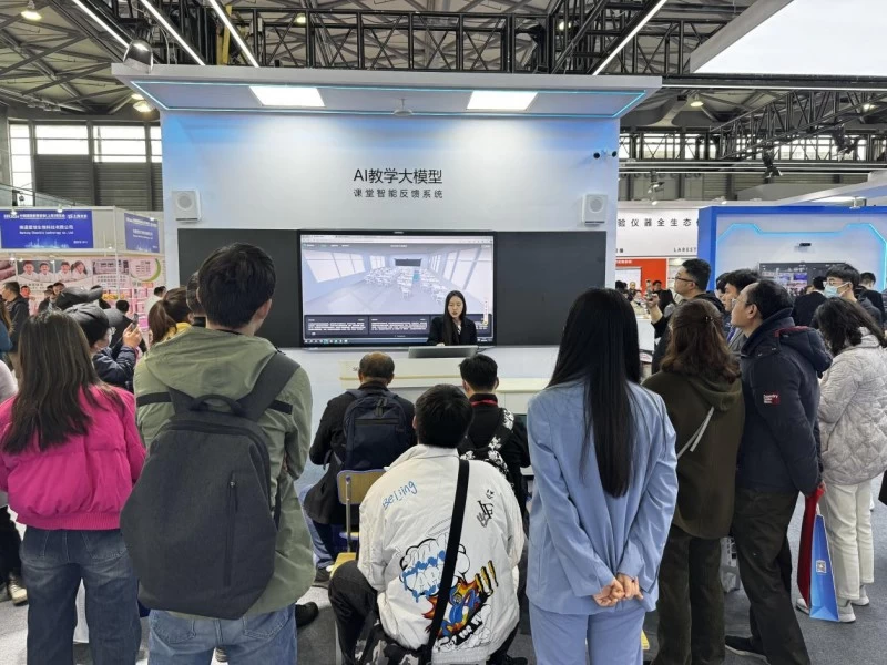希沃“未来一堂课”成为展会打卡点。希沃现场解说员介绍:“希沃第七代交互智能平板搭载课堂智能反馈系统,以AI大模型技术为基础,可以实现课前、课中、课后的全流程融通,呈现未来AI技术加持下的全新教学模式。”现场演示,课前,教师们通过希沃白板的“一键备课”功能,快速生成课件,启发教师思路,辅助教师将更多时间放在教学设计。课中,希沃课堂智能反馈系统能对教学过程中产生的教学数据进行采集,参考国际通用的弗兰德斯分析矩阵生成各项指标数据,快速生成报告,助力教师们精准教学。
