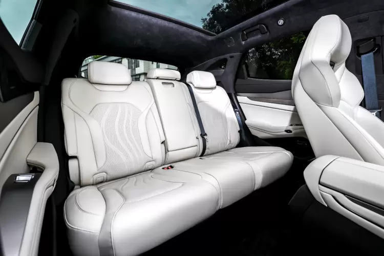 自面世以来,腾势N7的豪华舒享座舱便深受用户好评,试驾过的用户都说好。得益于2940mm的轴距及腾势专属CTB进阶版技术加持,腾势N7拥有超大车内空间,相同车身高度下纵向空间增加了15mm,不仅座座皆是百万舒享待遇,低趴姿态也不妨碍优秀的头部空间,同时全车座椅均为高级NAPPA真皮,视觉细腻、纹理高级,且手感柔软、乘坐舒适。