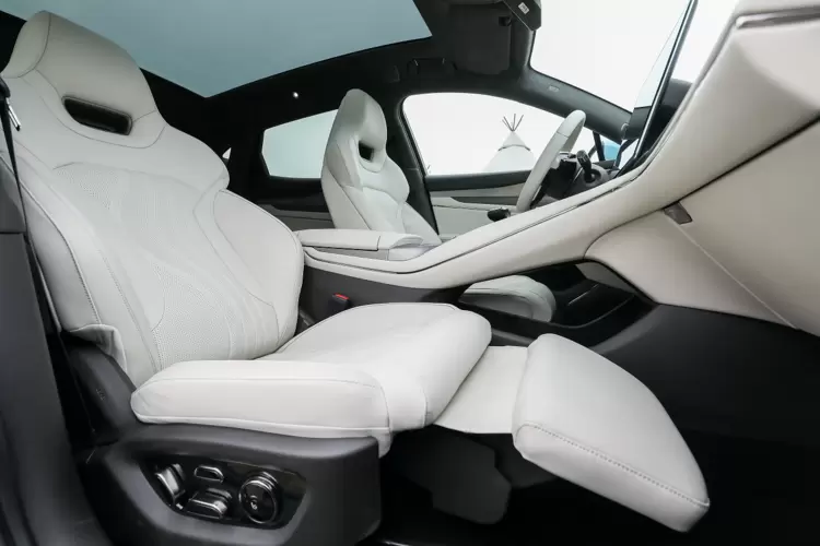 全新腾势N7对双排乘坐舒适性进行了全面升级,座椅配备5D云感人体工学座椅,提供从头枕到肩部再到腰部两侧的完美包裹与全面支撑,即使久坐也能拥有舒适惬意的乘坐感受。其中,主驾座椅支持14向电动调节、加热、通风、按摩;新增电动四向调节方向盘、流媒体内后视镜和外后视镜自动防眩目等贴心辅助,助力全新腾势N7驾驶更轻松。副驾零重力-宠爱座驾则支持加热、通风、按摩、8向电动调节、0-70度腿托调节,以及一键启动零重力模式,可最大程度满足副驾休憩需要,再辅以副驾娱乐屏、50W手机无限快充、美颜化妆镜,副驾屏可自定义祝福语,仪式感拉满,打造副驾专属女王宠爱体验。
