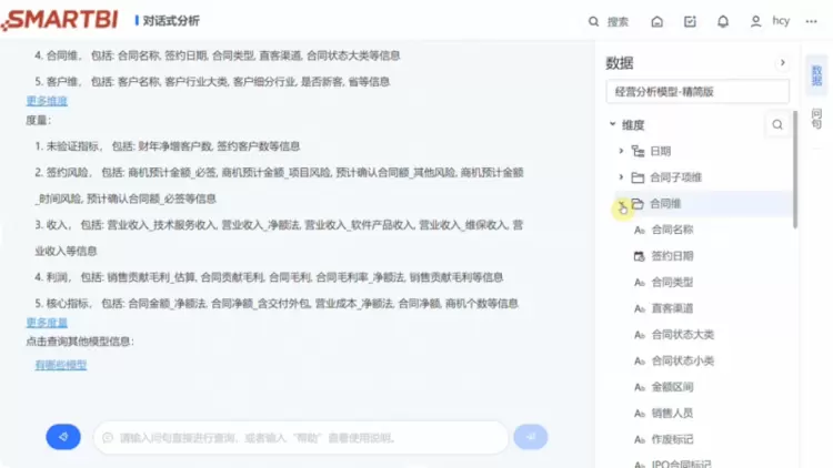 脱离了实际业务背景的数字化工具必然是低价值的。Smartbi对话式分析大模型版本之所以能有效帮助企业降本增效,创造业务价值,关键在于搭建了一个参考的管理指标体系,让客户只需要根据自己的情况做指标删减,易于使用。同时,向导式的简单操作方式,也帮助企业沉淀优质的数据资产。
