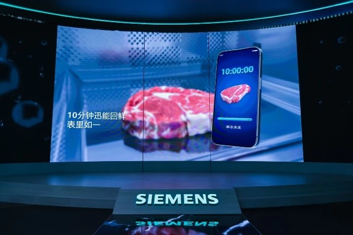 迅能回鲜解冻技术是冰箱的首个亮点。相比于市面上在制冷技术力求突破的其他选手,西门子冰箱从智能保鲜到解冻回鲜上环环精修,成功研发迅能回鲜解冻技术,解决传统解冻方式耗时长、营养流失的难题。该项技术采用高端智能芯片和智能算法,让高效射频均匀深入食材内部,10分钟就能快速回鲜解冻。即使是深冻的肉类也能在解冻后保持无菌、无血水状态,原鲜肌理口感依旧。用户只需通过手机APP,就能随时随地远程预约解冻时间,便捷操作、高效解冻,满足了快节奏都市生活下多种“临时起意”的烹饪需求。