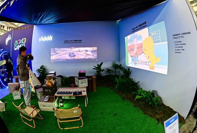 3月14日,在中国家电及消费电子博览会(以下简称“AWE 2024”)上,海信旗下互联网年轻潮牌Vidda在展台显眼位置展示了用多台三色激光投影拼接画面的新场景应用。除了Vidda,LED阵营的坚守者极米科技,也在今年初推出了使用三色激光技术的新产品。