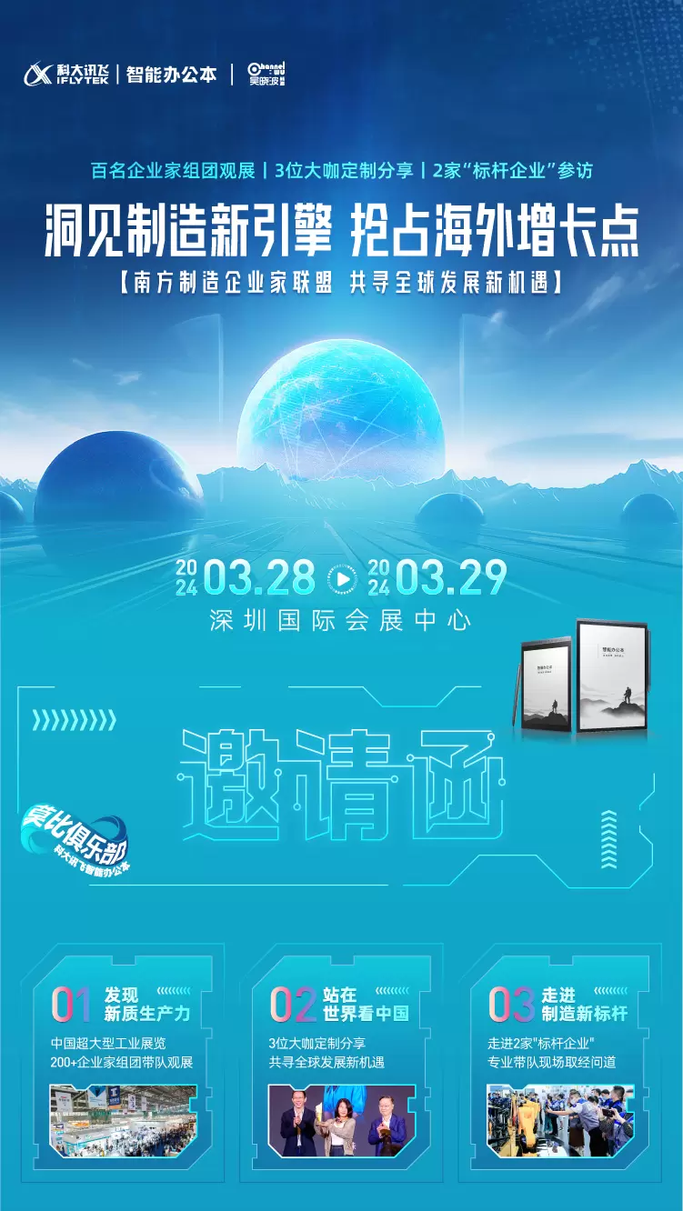 本次深圳站的用户活动,讯飞智能办公本联合南方日报、吴晓波频道,围绕“洞见制造新引擎,抢占海外增长点“的主题,带办公本用户深入一线,洞察制造业前沿资讯和最新成果,现场更有办公本团队带来圆桌交流,和用户一对一针对产品问题答疑解惑,届时还有什么精彩环节,我们一起期待!