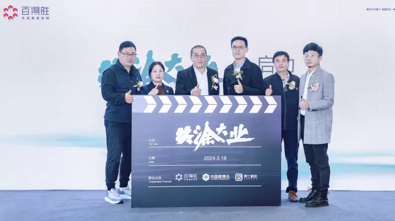 发布会上,中国林科院木材工业研究所研究员&博士生导师龙玲、百得胜家居董事长张健、中国建博会(广州)展商营销负责人陈鹏汉、百得胜家居副总经理杨森杰、百得胜家居水漆研究院总工杨年富、贵仁相助战略营销咨询创始人韩锋,共同完成共涂大业项目启动仪式。
