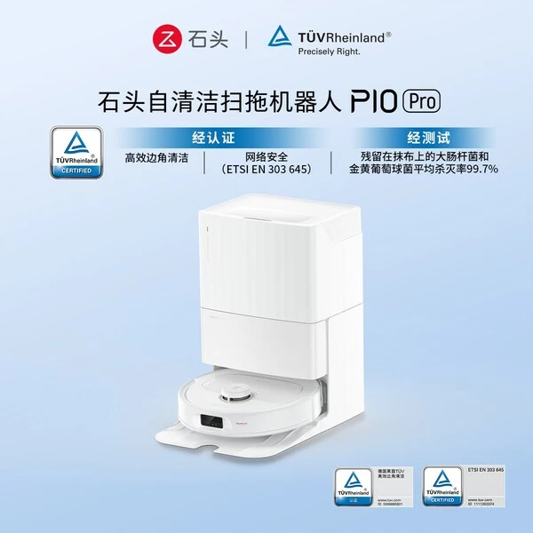 近日,国际独立第三方检测、检验和认证机构德国莱茵TÜV大中华区(简称“TÜV莱茵”)为石头扫地机器人P10 Pro、P10S和P10S Pro颁发了ETSI EN 303 645物联网产品网络安全和隐私保护认证证书以及TÜV莱茵“高效边角清洁”China-mark(中国标识)认证证书。同时,TÜV莱茵还为上述扫地机器人以及洗地机A20和A20 Pro出具了抹布/滚刷自清洁除菌性能测试报告。